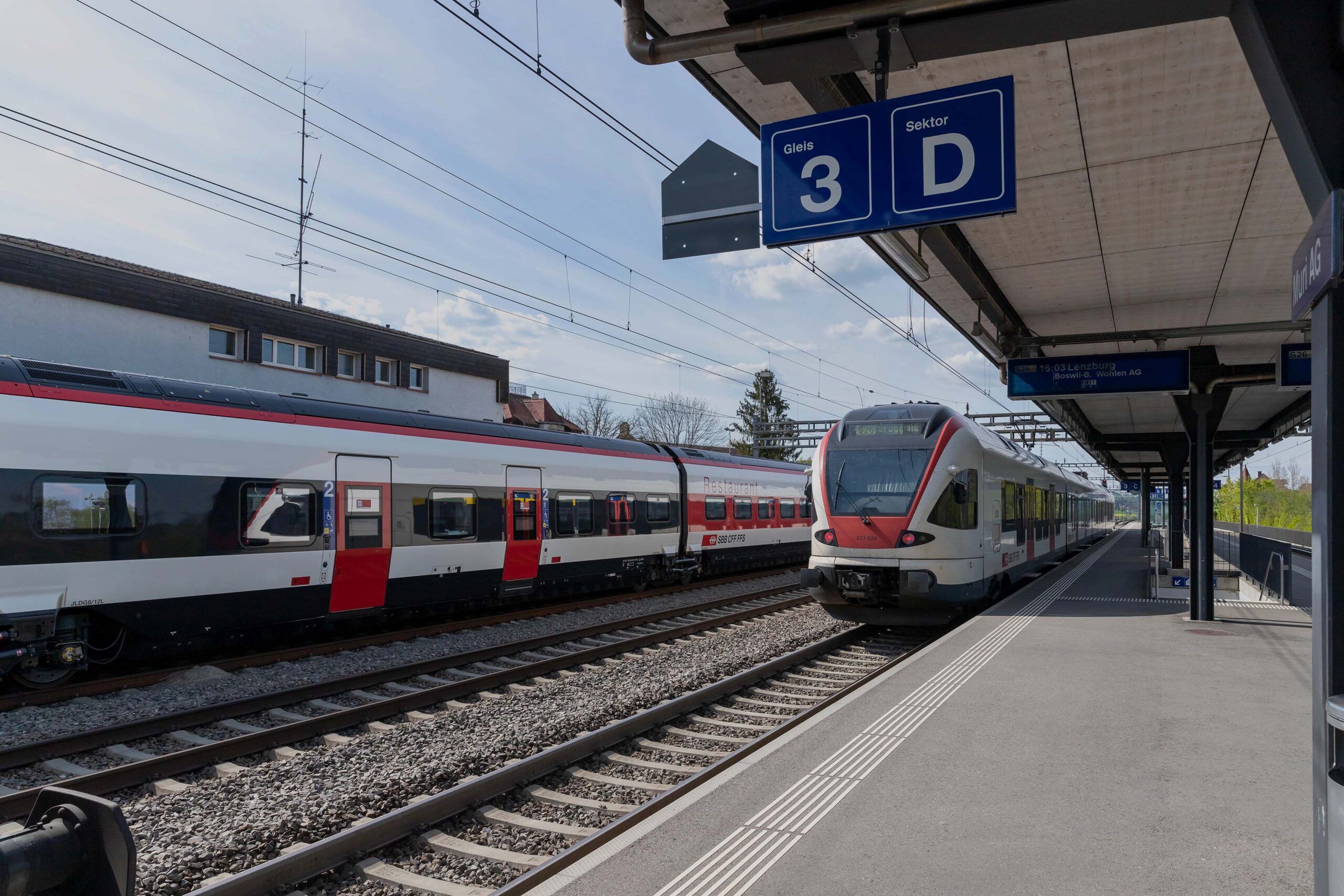 Nach Benzenschwil und Mühlau/Sins Am Standort des Volg-Provisoriums in Merenschwand steht ein digitaler .Point. Hier kann der Fahrgast wählen, ob er zum Bahnhof Benzenschwil, nach Mühlau oder Sins will. Ein zweiter Standort ist beim Bahnhofhäuschen in Benzenschwil Fahrtrichtung Merenschwand.